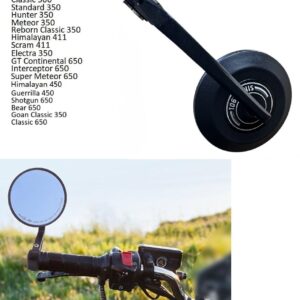 Compatible with ALL Royal Enfield Bikes. HD Convex mirror attached on High-grade Aluminum & Nylon Body Mounted With Steel Rod, Black powder coating protects against rust and wear over time. Strong, and built to last quality Enhanced Visibility: Rotating and adjustable design, customize your angle for optimal view, making every ride safer by improving awareness of surrounding traffic and obstacles. Makes your Bike unique and eye-catching in any occasion Direct Fit Product & Easy To Install – Easy Yoke fitting for secure mounting (install with the help of professional mechanic)