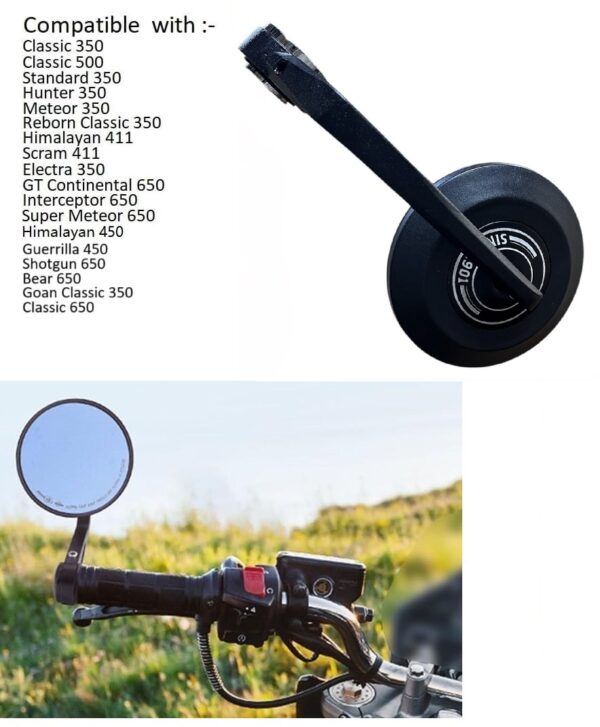 Royal Enfield Bike Rear View Handle Bar End Mirror Set Compatible With Hunter Meteor Reborn Classic Goan Classic Standard 350 Super Meteor Shotgun GT Continental Interceptor Bear 650 Himalayan Scram Guerrilla