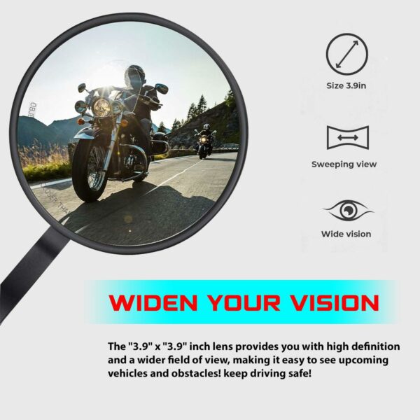 • Enhanced Visibility: 360° adjustability ensures you can position the mirrors to eliminate blind spots and achieve the best possible view, making every ride safer by improving awareness of surrounding traffic and obstacles.
